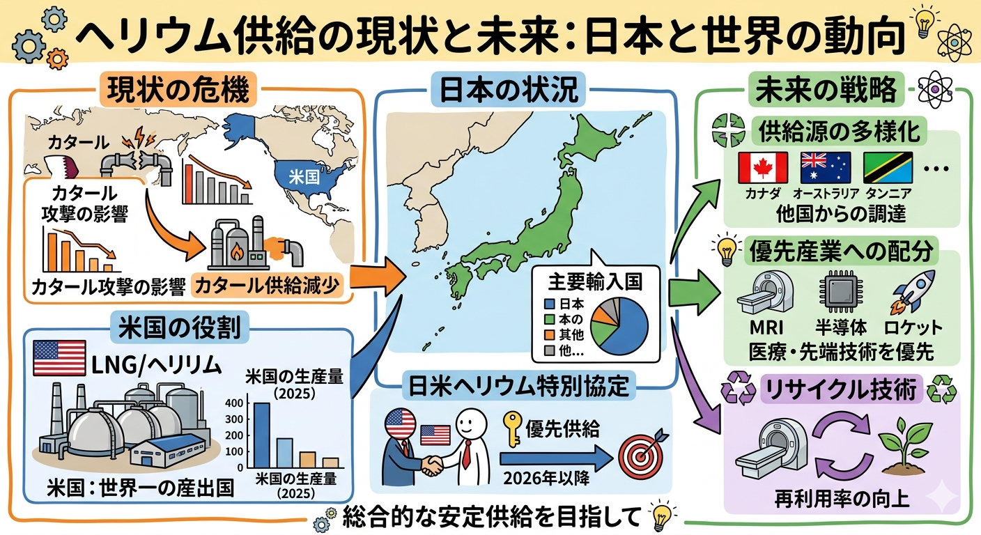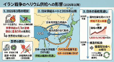 構造的な転換: 2026年以降、日本は「輸入に頼る」モデルから、ヘリウム回収・リサイクル装置の導入を義務化するような「循環型社会」への移行を加速せざるを得なくなります。